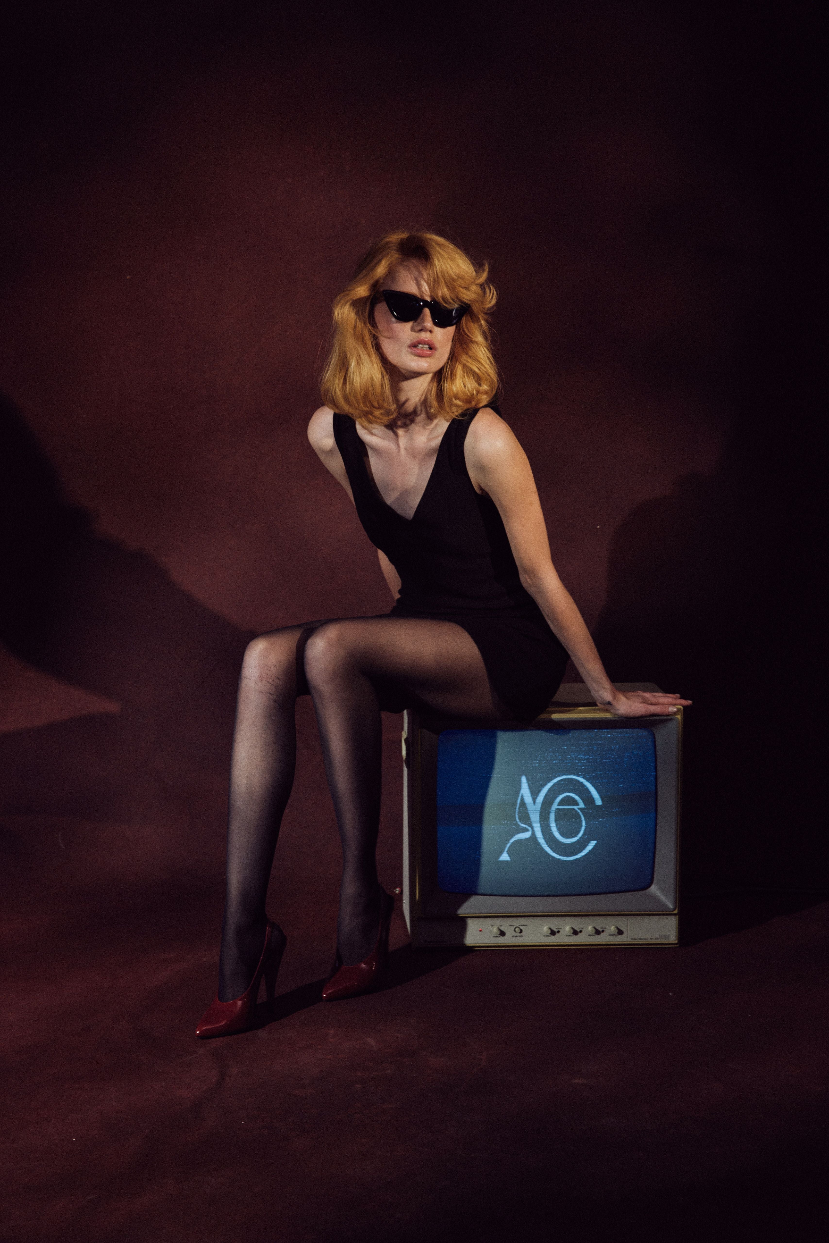 An angular New Wave shoulder pad creates a strong, sharp silhouette destined for journeys beyond convention. Cast in black jersey knit, combine with flats or heels for a workday statement or raucous night.